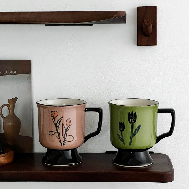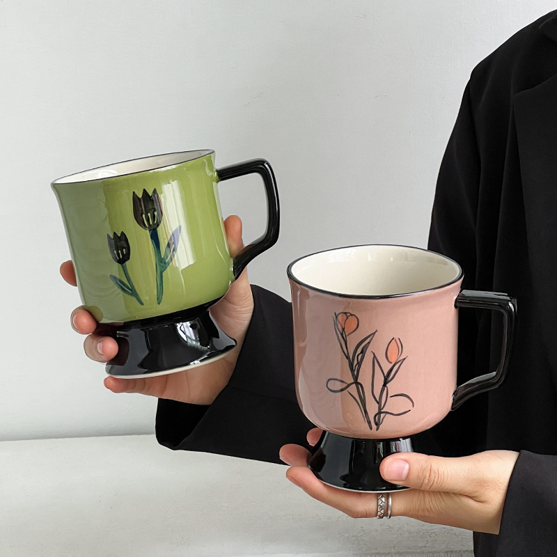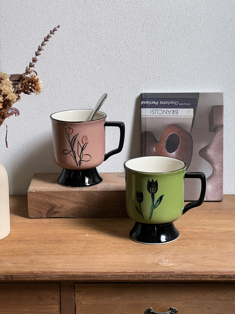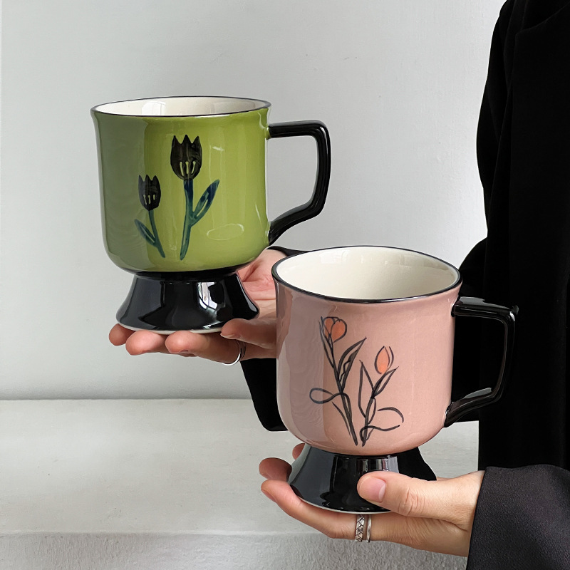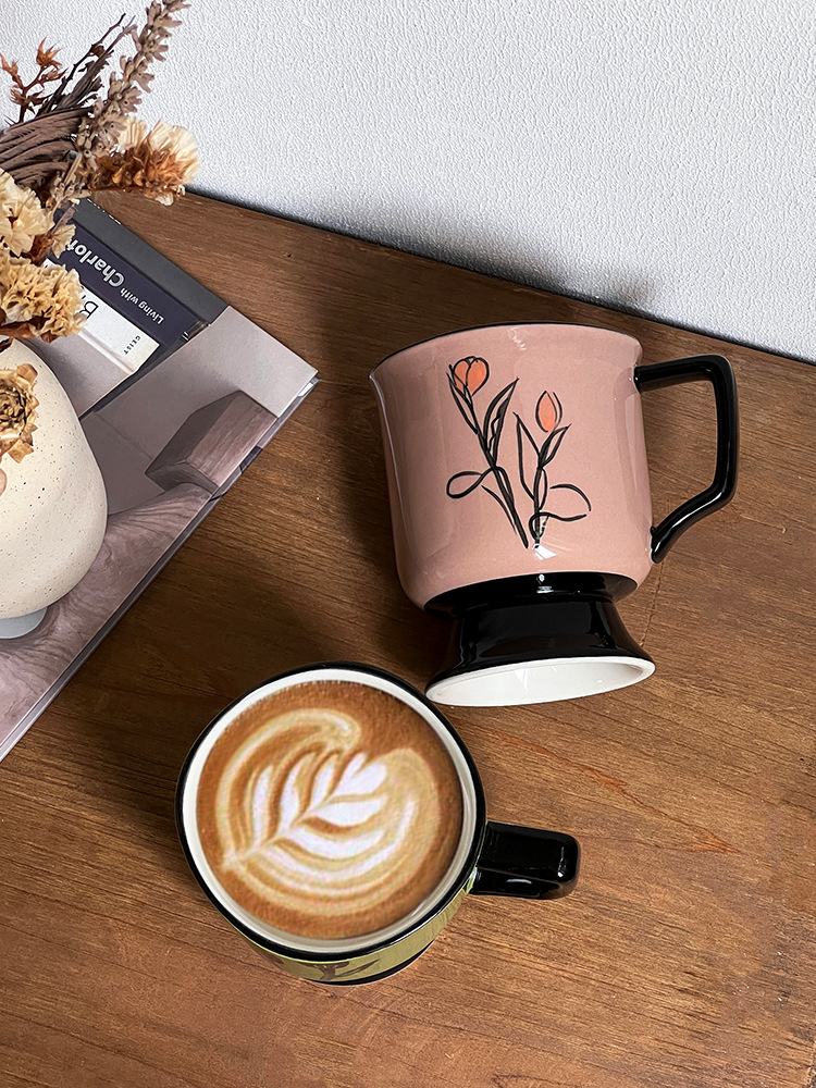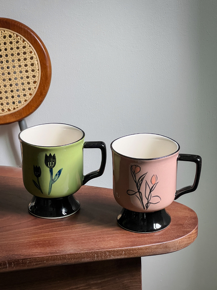 黑边小高脚设计在诉说着它面对生活的小骄傲。特别喜欢杯身与杯口线条流畅的连接,是有心机的设计感。手绘郁金香花纹给这个杯子再添一份优雅。